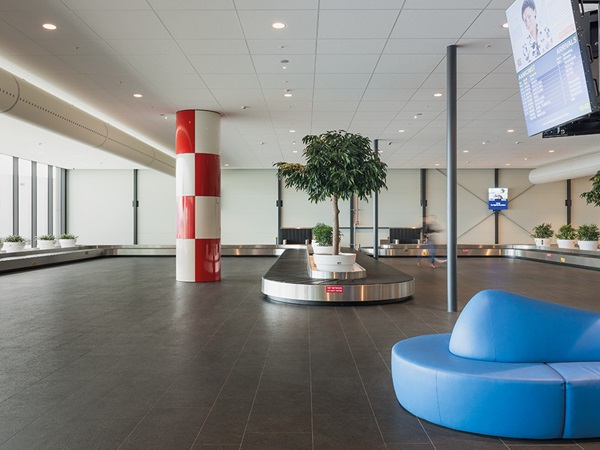 Despite the large numbers of passengers, nora rubber floor coverings provide comfortable acoustics in the new arrival hall. Because of their dense, closed surface nora rubber floor coverings are extremely wear-resistant, they are easy to clean and even after years of intensive use they still look like new. Furthermore, in contrast to other elastic floor coverings, they do not need a coating. Because of this they are also the most cost-effective solution in the long term. This is the reason why you can find them in so many international airports.