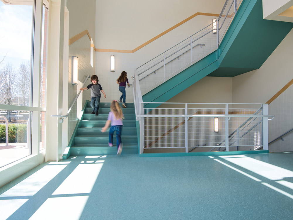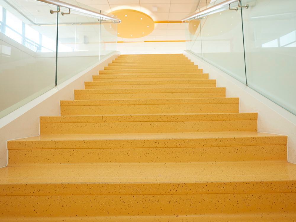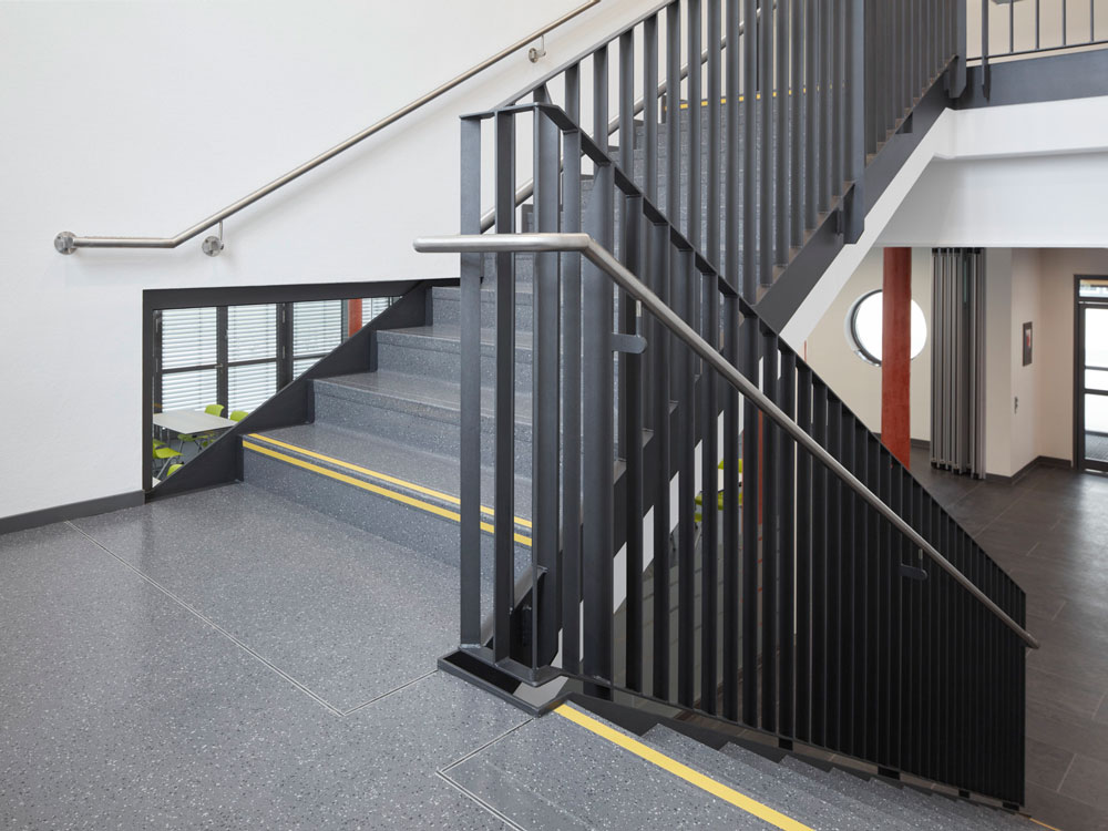 Au design granulé ton sur ton, à surface martelée, mesure d‘amélioration phonique aux bruits d‘impact : 12 dB