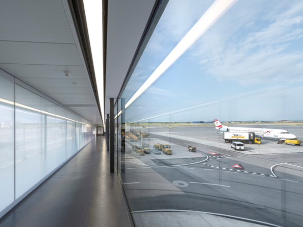 The terminal extension lets the airport react flexibly to changing traffic and to varying traffic peaks, and to handle significantly more passengers: “Check in 3” has doubled the previous terminal area. With a length of 270 m and a width of 55 m, the new 20 m high terminal building comprises a gross floor space of 76,000 square metres. The functions that are most important for departing and arriving passengers are housed on two levels: baggage reclaim and the arrivals hall are on Level 0, while the check-in area is on Level 1.