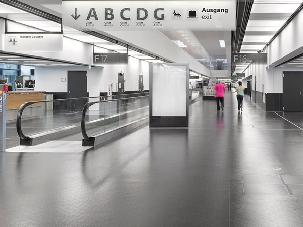 The products from the rubber specialists in Weinheim are also noted for their highly ergonomic qualities. Thanks to their lifelong resilience and their shock-absorbing effect, they make walking and standing easier for passengers and for airport staff – strain on the back and on the joints is noticeably lessened. The level of noise inside the buildings is also significantly lower with rubber floor coverings than it is if hard floors such as stone are installed. The material brings an exceptional reduction to the level of footfall noise, and the noise created by rolling baggage and other loads is lowered at the same time. The nora floor coverings thus facilitate comfortable acoustics inside the terminal, in spite of the large number of passengers. Another big advantage: on account of their dense, sealed surface, nora rubber floor coverings don’t need additional coatings and can be cleaned easily. They therefore don’t just make a good visual impression, but are extremely economical. On top of this, nora floor coverings are extremely resistant to abrasion. Even after decades, they hardly show any signs of wear, and neither their functionality nor their appearance has suffered. That is why they are to be found in so many international airports.