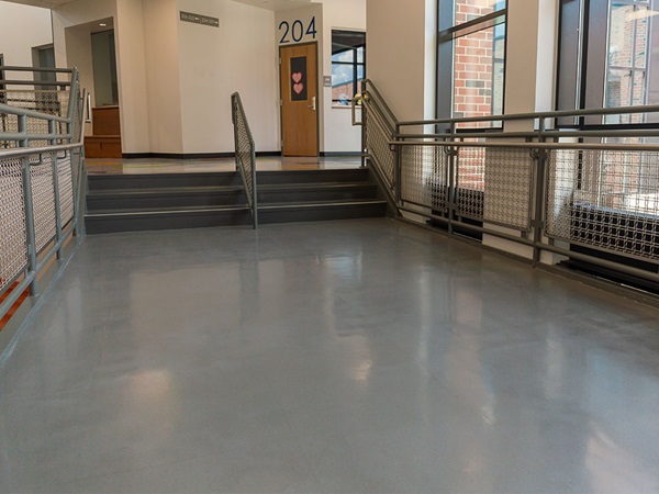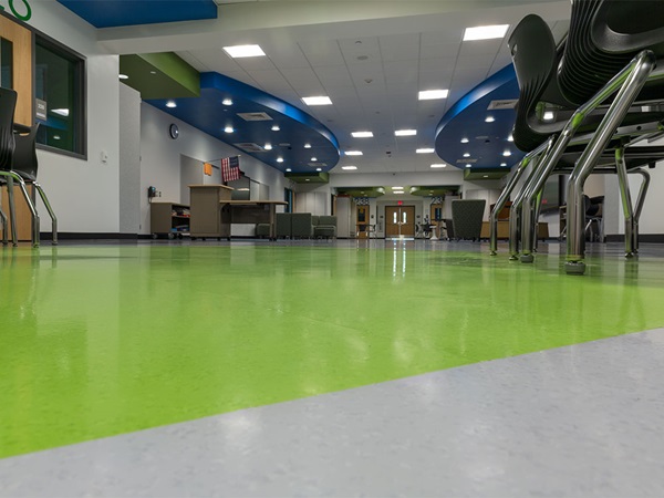 According to Royal Ferry, Greater Latrobe School District Custodial Supervisor, maintaining the rubber flooring on a daily basis has been easier than the previous facility’s vinyl composition tile (VCT) and natural stones. At the new school, the maintenance staff does not have to manage multiple flooring types with various protocols. Now, Royal’s staff can take care of the floor with a routine that is “unbelievable” compared to previous maintenance requirements. “Our staff can go in and take care of the flooring easily. It’s just one step, and it works so well,” he added.