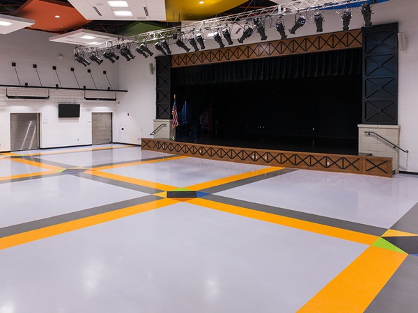 In addition to the maintenance benefits of the school’s new flooring, Latrobe chose to make aesthetics a priority. Throughout the campus, the school’s branded colors create a cohesive design with splashes of color everywhere. “The auditorium space and everywhere else throughout the campus just looks really wonderful,” said Sherri Holler, Latrobe Elementary School principal. “I truly believe that an inviting building helps kids learn.”