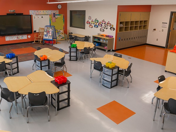 For Principal Sherri Holler, it was imperative to find flooring that supported the school’s use of flexible seating. “As part of that freedom, kids often choose the floor,” she explained. With an extremely dense and nonporous surface, rubber flooring offers hygienic benefits and chemical-free maintenance, which is especially important for creating safe and supportive learning spaces for students with allergies.