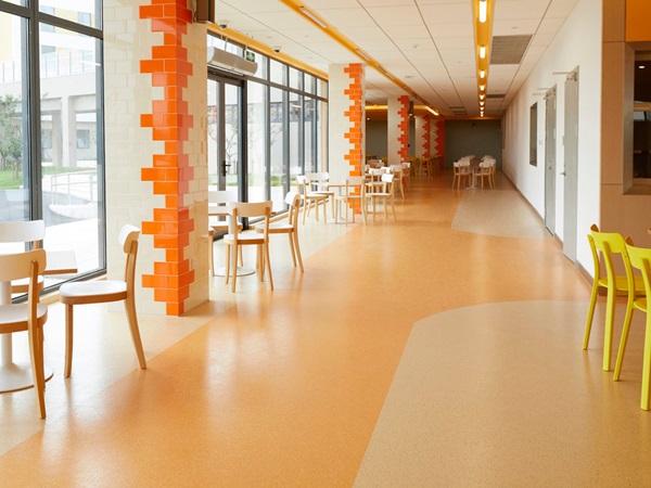 诺拉®地板凭借出色的耐磨性能被应用于人流量最集中、使用频率最高的公共区域,如大厅、走廊、食堂等。为师生创造安全健康的学习和成长空间。