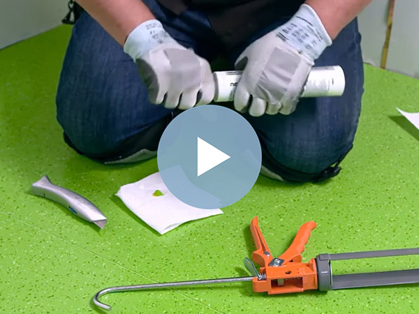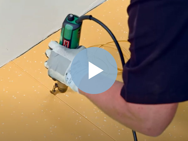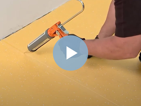 Aprenda paso a paso a ranurar y aplicar soldadura en frío nora en juntas para pisos nora con una superficie estructurada.