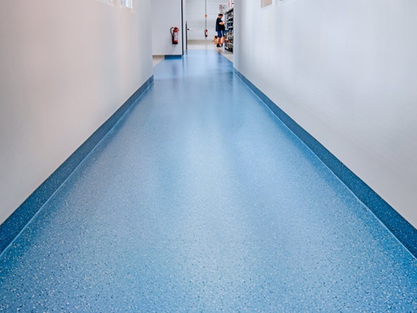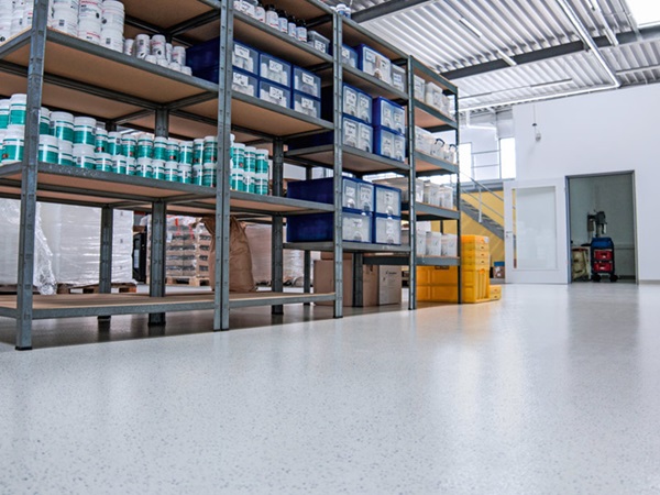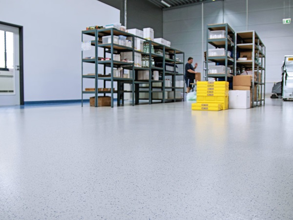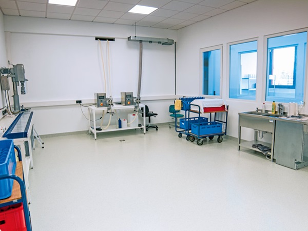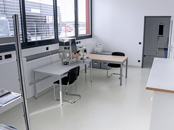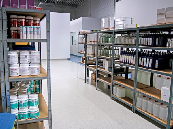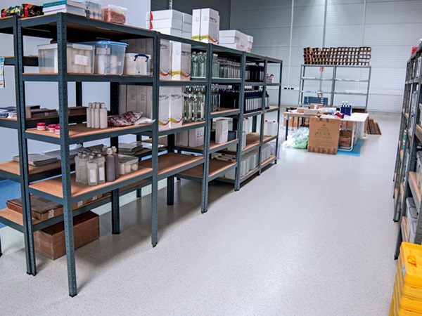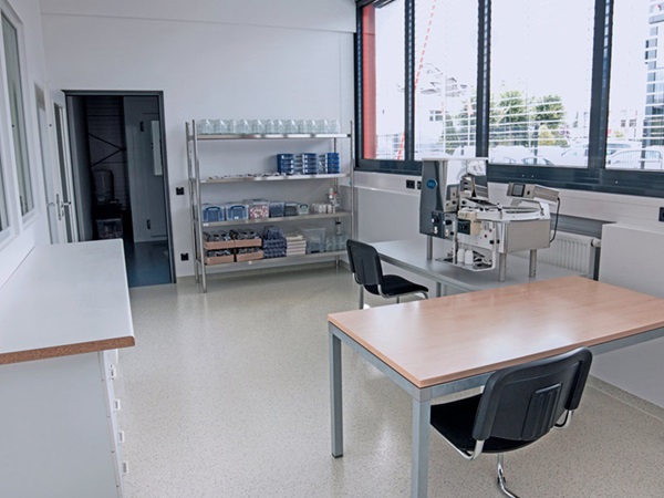 Chaque mois, Sanacare fabrique entre 2500 et 3000 bouteilles d’eaux basiques et acides. Lors du remplissage, il arrive qu’un peu de liquide des conteneurs coule sur le sol. « C’est pourquoi, nous avons testé au préalable les dalles norament® durant quatre semaines de manière intensive en apportant dans le même temps différentes solutions », explique Marcel Fischer. « Aucun liquide n’a pu pénétrer dans la surface en caoutchouc et il a été possible de les essuyer facilement. » De plus, le passage de chariotsélévateurs n’a pas endommagé le résistant norament® 926 grano avec sa surface martelée et son design caractéristique à granules. Depuis des années, il s’agit de l’un des revêtements nora® les plus appréciés lorsque le sol est soumis à des sollicitations importantes comme c’est le cas pour les sites industriel. Fischer y voit également un autre avantage : « Si des impacts d’une extrême force devaient endommager, les dalles elles pourront être facilement changées, comme c’est généralement le cas pour tous les produits norament®. Avec de la résine époxy, cela ne serait pas possible. » De plus, en raison de la surface extrêmement dense, les sols en caoutchouc sont très faciles à nettoyer.